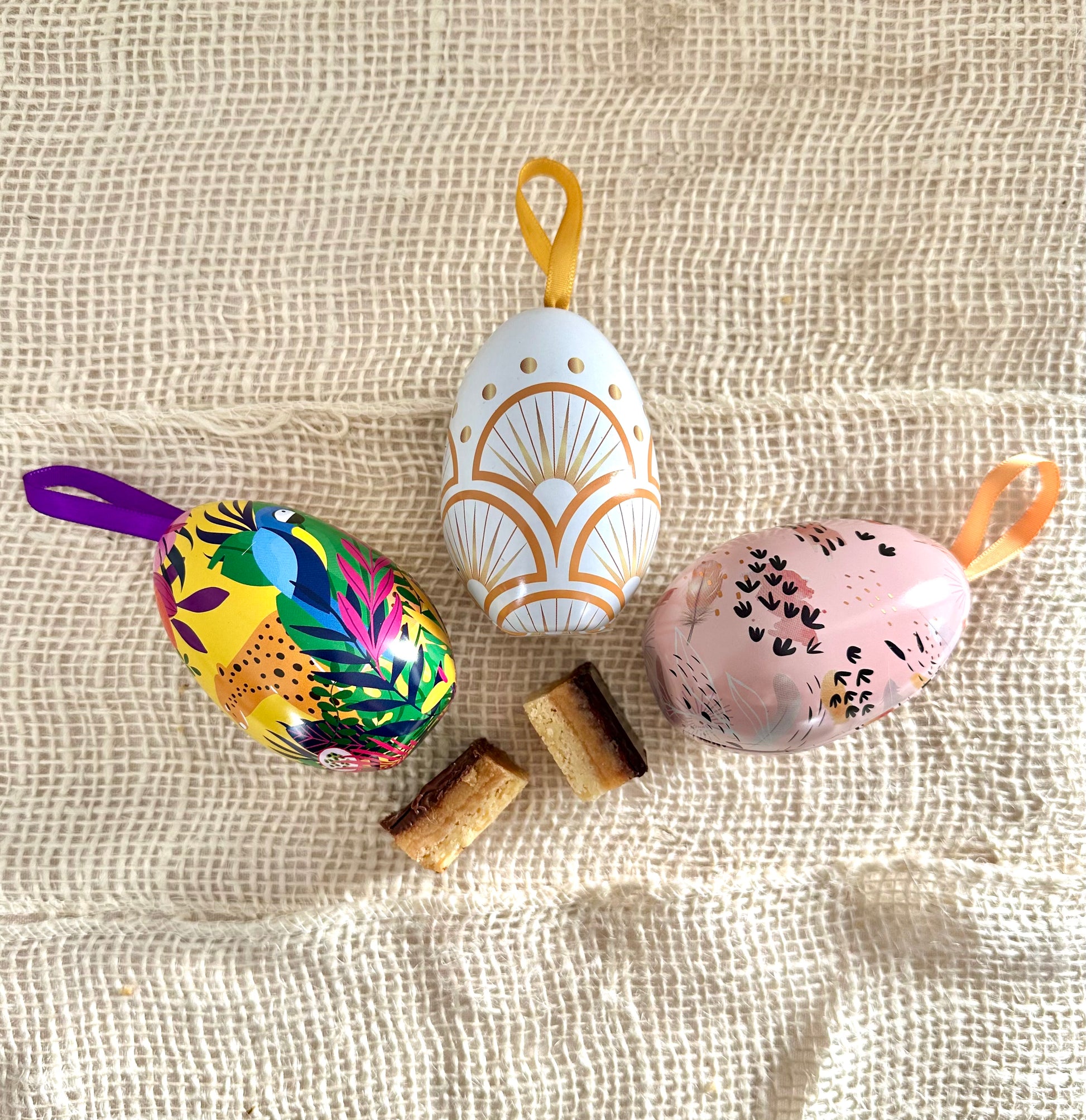 Chaque oeuf contient 1 shortbread Classique Lait + 1 shortbread Classique Noir.